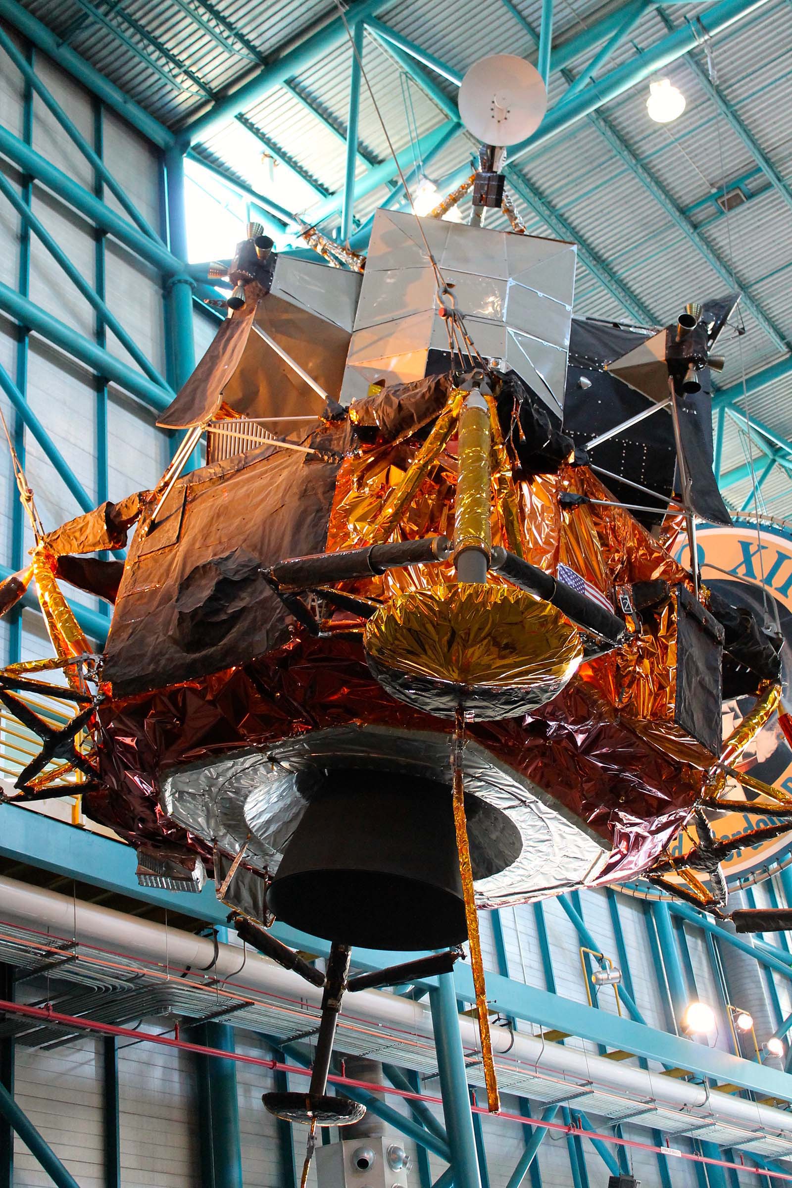 This is the H-series LM-9, which is on display at the Saturn V Center at Kennedy Space Complex Visitor Center. It was originally scheduled for Apollo 15 but was replaced with LM 10 which was a J-Series Lunar Module. Until recently, it was suspended from the ceiling by four cables that attached to the landing gear outriggers. These are the same points used to attach the LM to the Spacecraft Lunar Module Adapter (SLA). It has since been brought down and displayed at ground level.