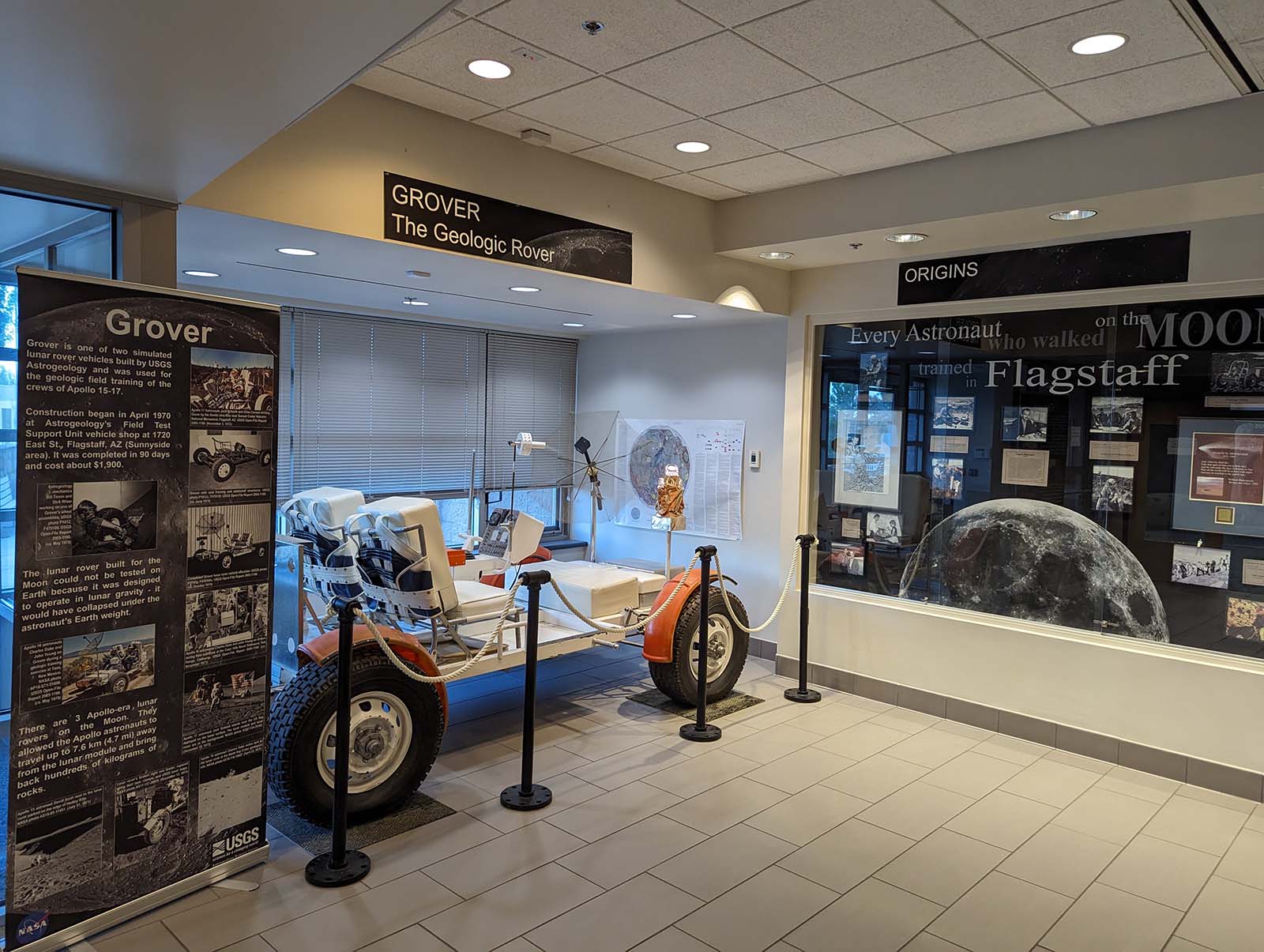 The United States Geological Survey mechanics in Flagstaff built two practice rovers at a cost of about $1,900 each. These practice rovers were given the nickname “Grover,” short for “geologic rover”.