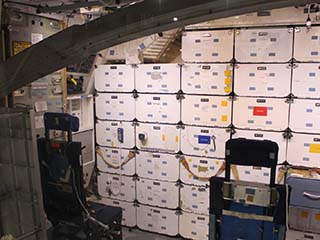 The one of two shuttle nose-section trainers that were used by the astronauts. Like the real shuttle orbiters' crew compartments, the trainer's cabin was outfitted with two levels — the upper flight deck cockpit and the lower mid-deck living area — but unlike a simulator, its dials and instruments are non-functional. The mockup could be tilted skyward, though, to provide crew members with the experience of working in the same orientation that their shuttle would be when on the launchpad. Rockwell International Corp. built CCT-1, modeled on the space shuttle Columbia, in 1979.