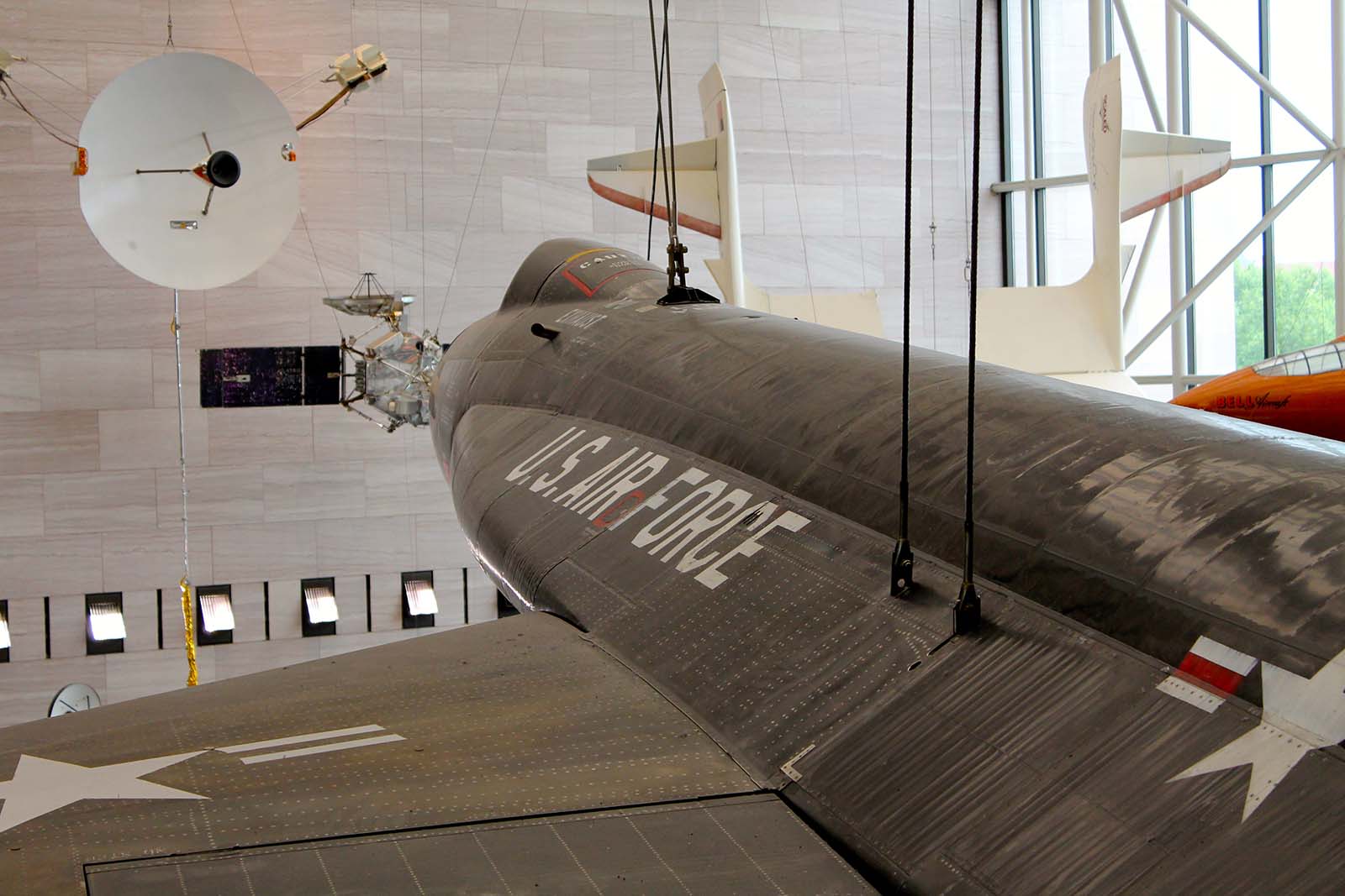 This X-15 is displayed suspended from the ceiling in the Milestones of Flight at the National Air and Space Museum. It is best viewed from the second floor balcony.